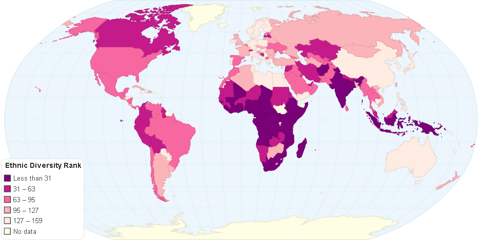 cultural fractionalization is approximated by a measure of similarity between languages, varying from 1 = the population speaks two or more unrelated languages to 0 = the entire population speaks the same language. This index of cultural diversity is biased towards linguistic variations as opposed to genetic diversity and other variations.