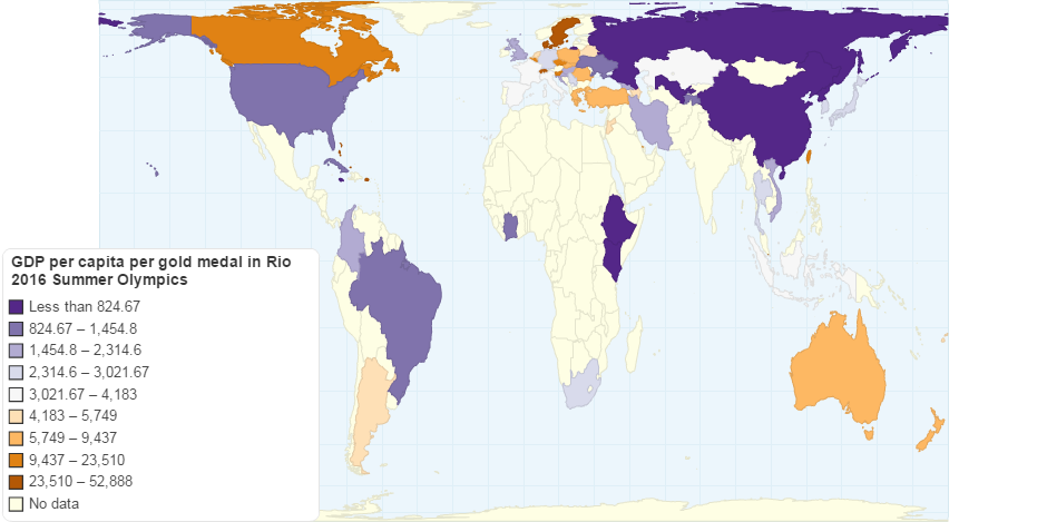 How well did countries do with respect to their GDP per capita, in the Summer Olympics in Rio 2016, in terms of gold medals?