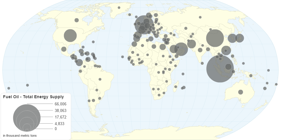 This chart shows Fuel Oil - Total Energy Supply by Country.