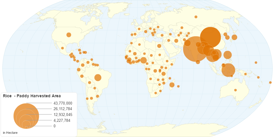 This chart shows Rice - Paddy Harvested Area by Country.