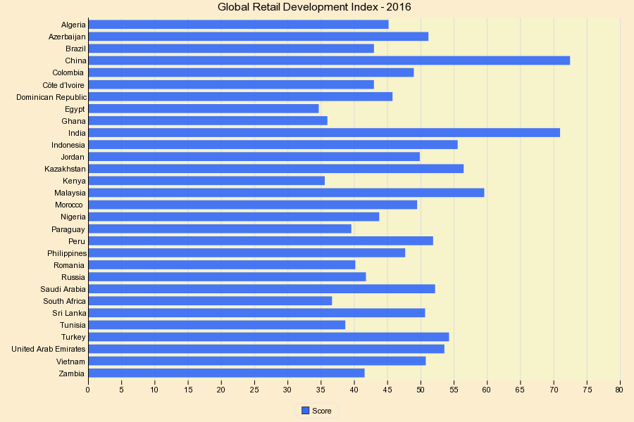 This chart shows Global Retail Development Index - 2016.