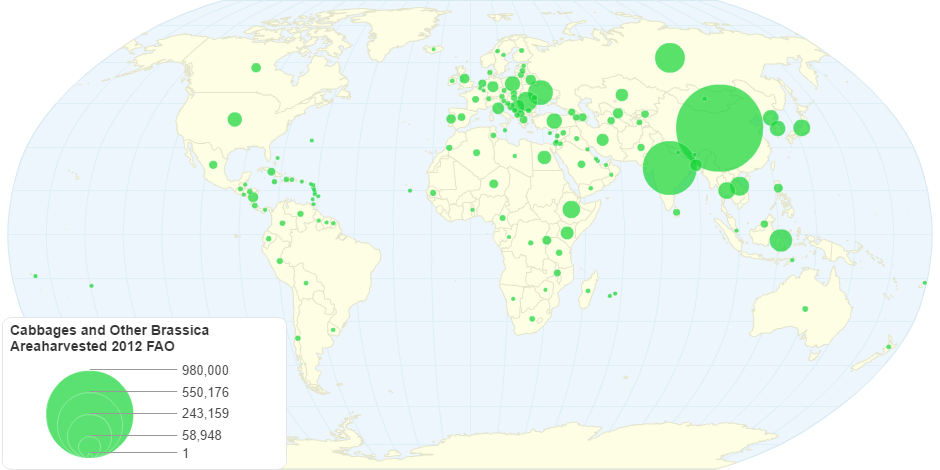 Cabbages and Other Brassica Areaharvested 2012 FAO