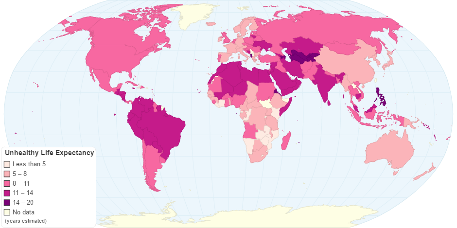 This chart shows Unhealthy Life Expectancy by Country.