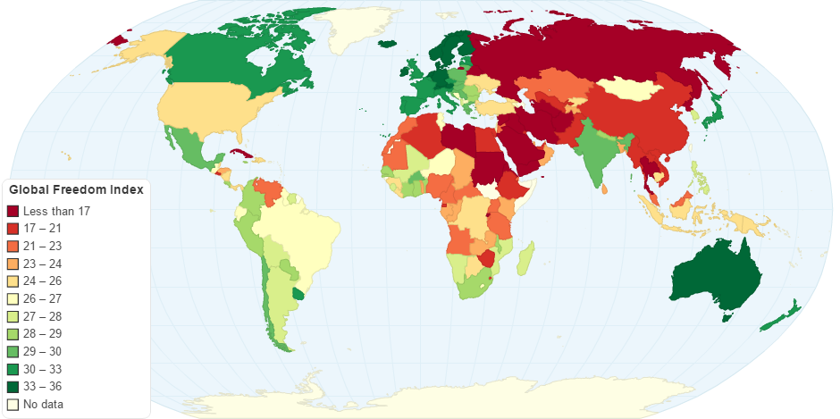The Global Freedom Index measures a country's economic freedom, social freedom and civil liberties.