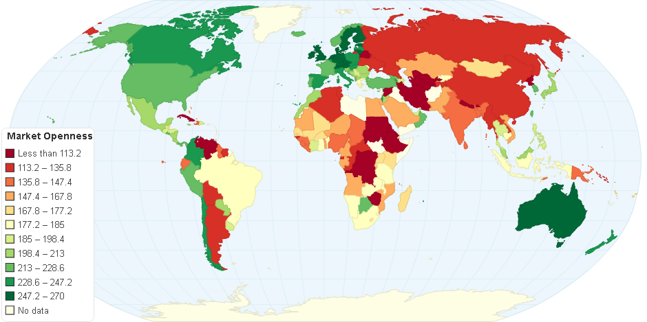 The level of market openness by country (0-300)