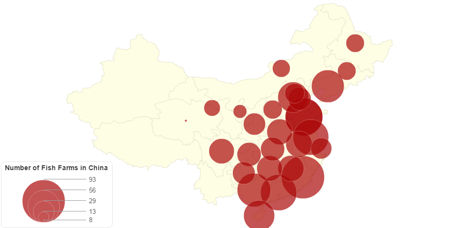 Number and location of aquaculture farms in China