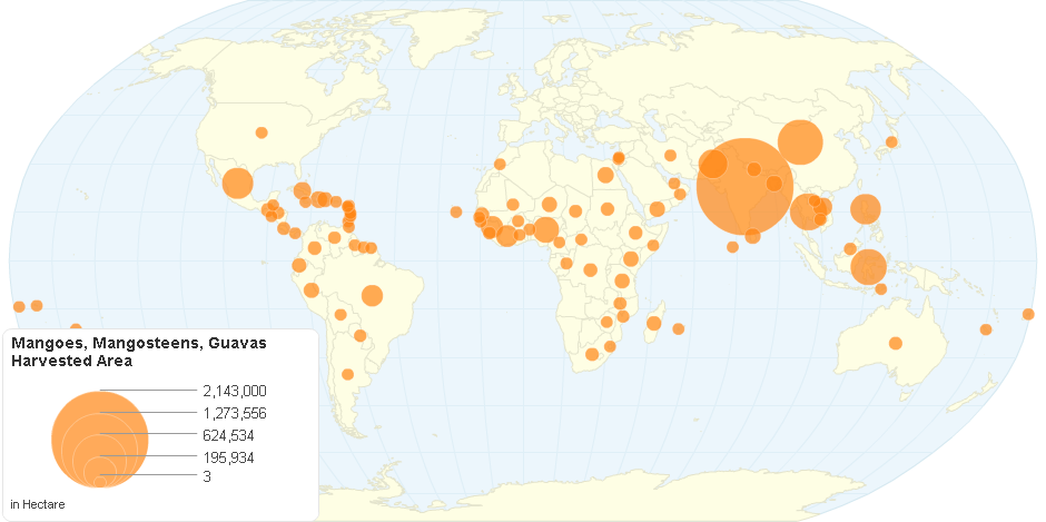 This chart shows Mangoes, Mangosteens, Guavas Harvested Area by Country.
