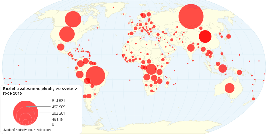 Rozloha zalesnÄ›né plochy ve svÄ›tÄ› v roce 2015.
