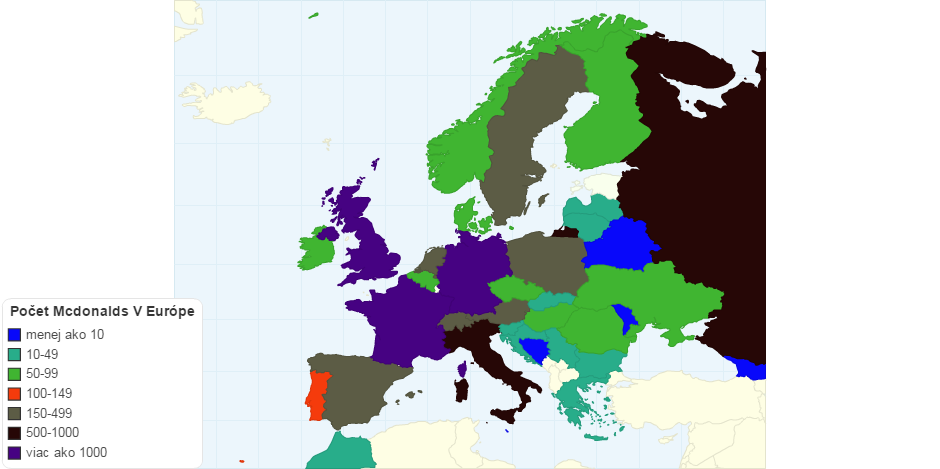 Na mape je zobrazený počet Mcdonalds v európe.