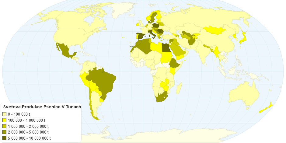 Světová produkce pšenice v tunách, průměrná produkce v letech 1993 - 2014