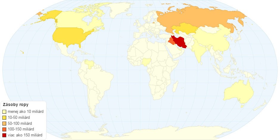 Mapa zobrazuje zásoby ropy v jednotlivých štátoch.