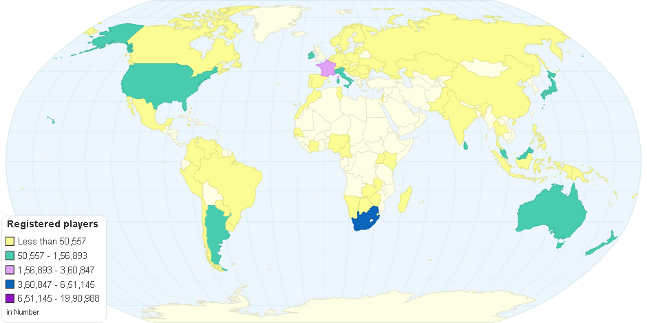 From the information supplied to the IRB by its union members, there are a total of 4,504,188 people who played organised rugby, though several countries have failed to supply details, and of this total only 852,866 are senior players. England alone claims 1,834,656 junior and youth players, almost 40 percent of the world's player total.