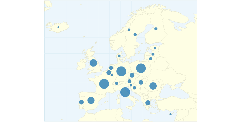 Tato mapa vizualizuje počet úmrtí při dopravních nehodách v EU v roce 2014