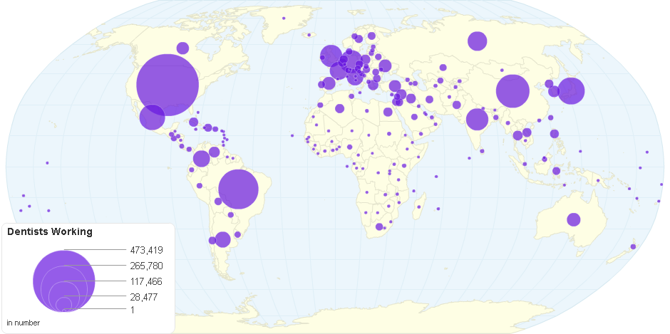 This chart shows Dentists Working by Country.