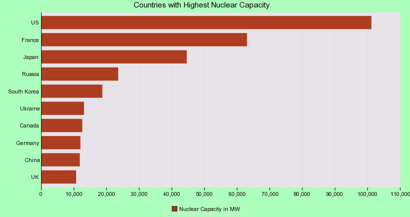 This chart shows Countries with highest Nuclear Capacity.