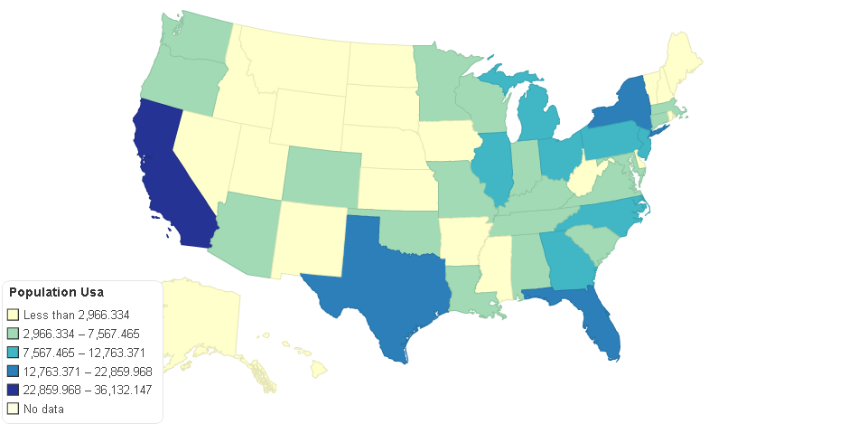 Populácia v jednotlivých štátoch USA
