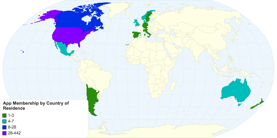2017 Membership statistics by country of residence for the Association of Professional Piercers