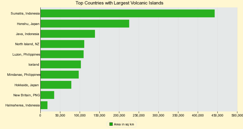 This chart shows Top Countries With Largest Volcanic Islands.