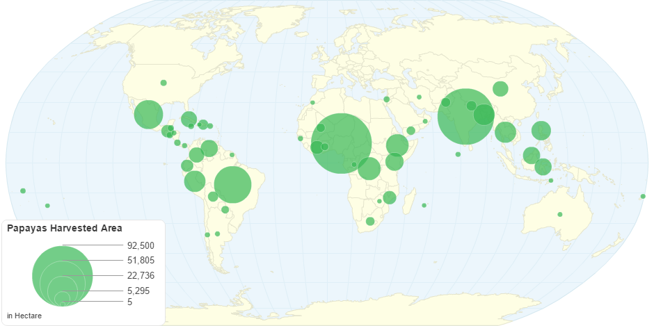 Papaya is native to Central and northern South America and has become naturalized throughout the Caribbean Islands, Florida and several countries of Africa. Additional crops are grown in India, Australia, Malaysia, Indonesia, the Philippines, and the U.S. state of Hawaii.