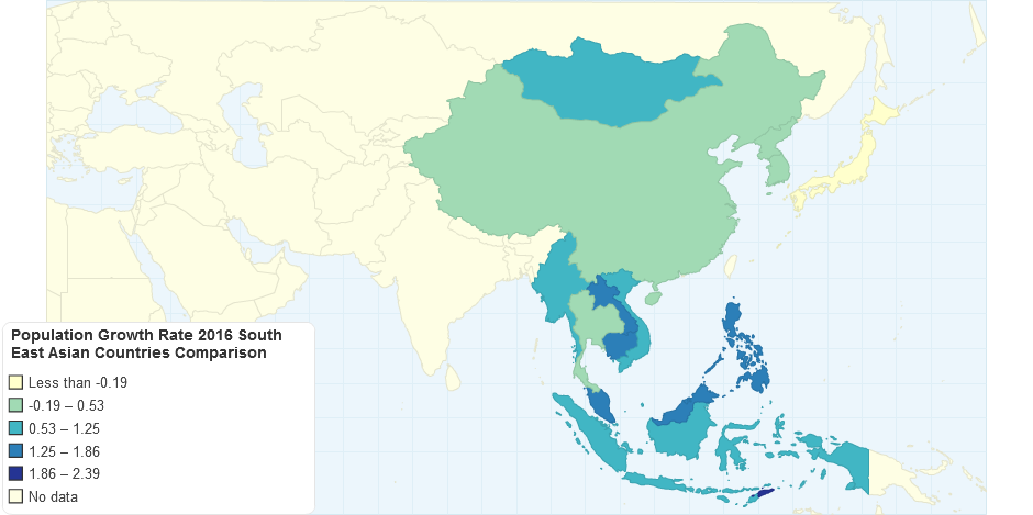 Population Growth Rate 2016 South East Asia Region according to the Central Intelligence Agency US, Factbook