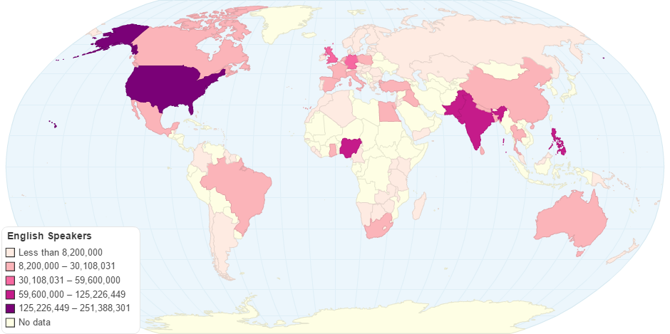 English is either the official language or one of the official languages in almost 60 sovereign states. It is the most commonly spoken language in the United Kingdom, the United States, Canada, Australia, Ireland, and New Zealand, and is widely spoken in some areas of the Caribbean, Africa, and South Asia.