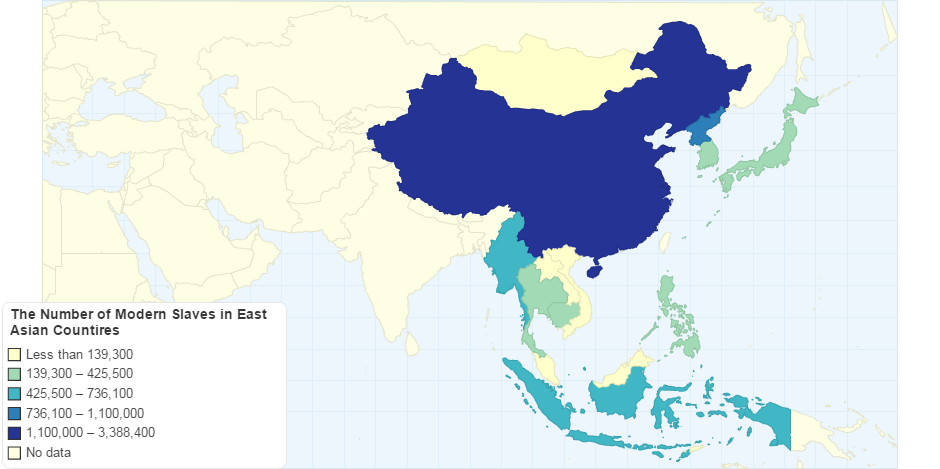 The Number of Modern Slaves in East Asian Countires