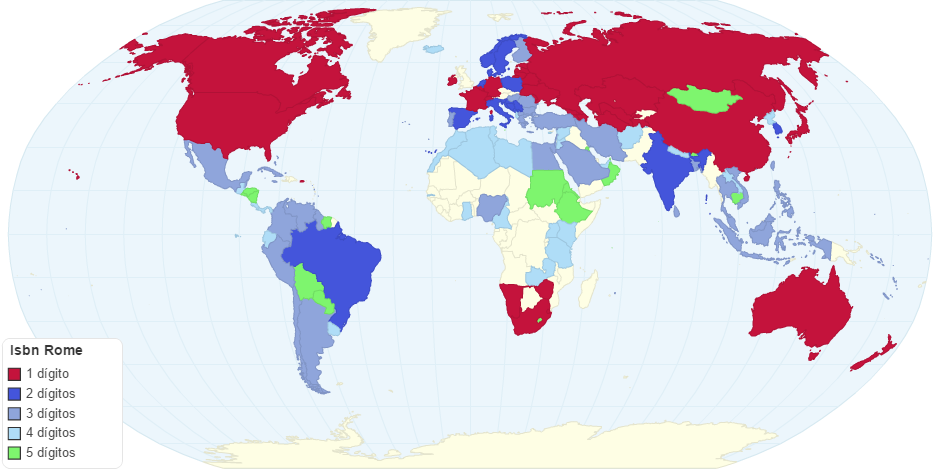 Mapa de la distribución del número de ISBN en el mundo.