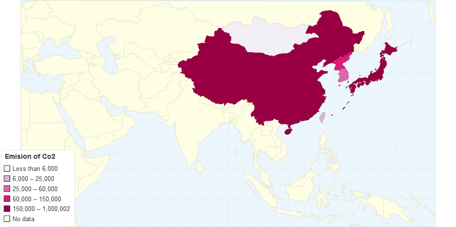 Emission of CO2 in EastAsia