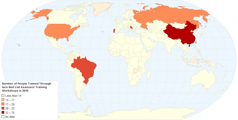 Number of people trained through IUCN Red List Assessor Training Workshops in 2015., IUCN, viewed 10th February, 2016.