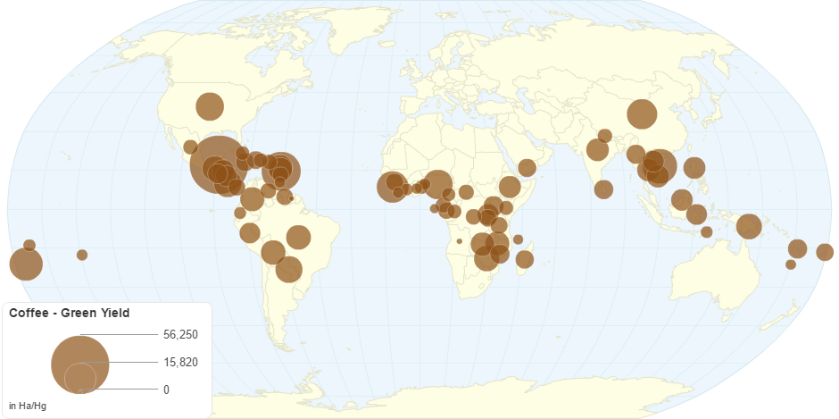 This chart shows Coffee - Green Yield by Country.