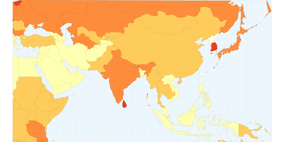 Map shows suicide rates per 100 000 population in 2012