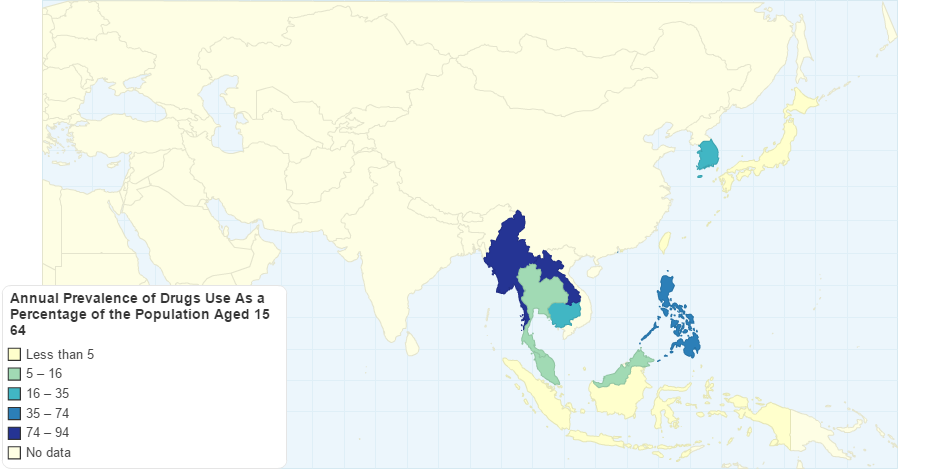 Annual prevalence of drugs use as a percentage of the population aged 15-64, UNODC Statistics, viewed 9th January, 2017.