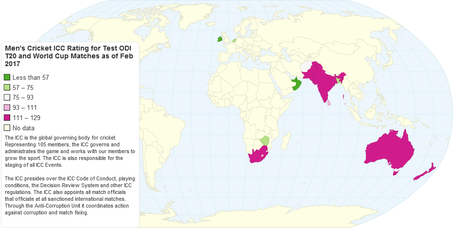 The ICC is the global governing body for cricket. Representing 105 members, the ICC governs and administrates the game and works with our members to grow the sport. The ICC is also responsible for the staging of all ICC Events. The ICC presides over the ICC Code of Conduct, playing conditions, the Decision Review System and other ICC regulations. The ICC also appoints all match officials that officiate at all sanctioned international matches. Through the Anti-Corruption Unit it coordinates action against corruption and match fixing.