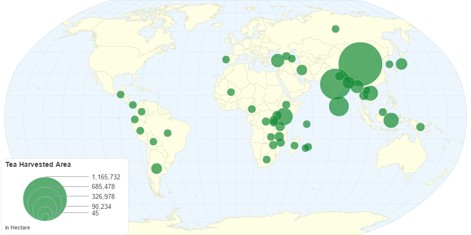 This chart shows Tea Harvested Area by Country.