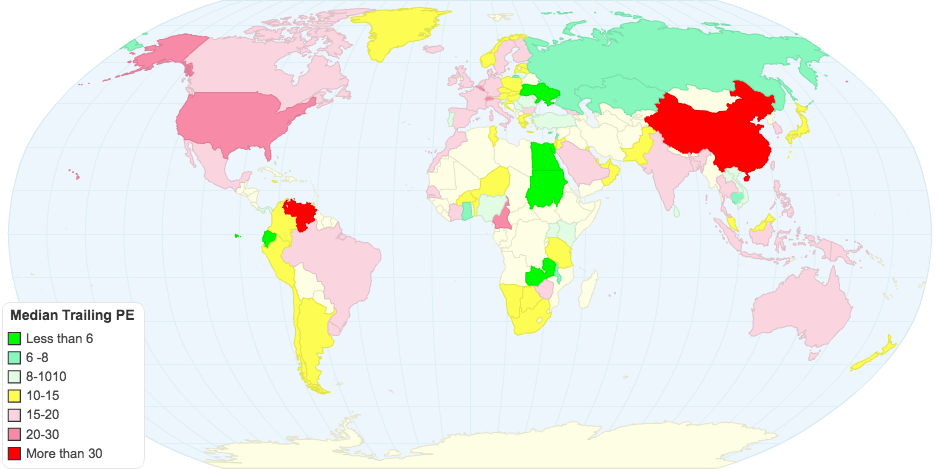 Trailing PE ratio are computed at the start of 2017, using market capitalization as of that date and trailing 12 month earnings.
