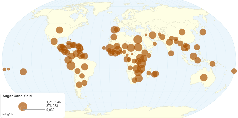 The average yield of cane stalk is 60–70 tonnes per hectare per year. However, this figure can vary between 30 and 180 tonnes per hectare depending on knowledge and crop management approach used in sugarcane cultivation. Sugarcane is a cash crop, but it is also used as livestock fodder.