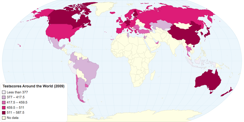 This world map show the testscorces that was obtained from EG.dta (By James Ang)