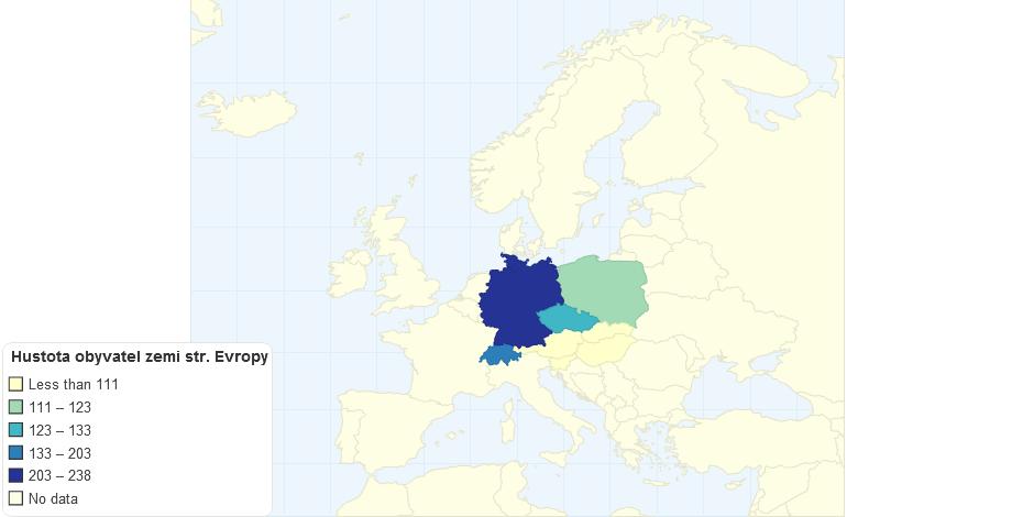 Počet lidí v jednotlivých státech Evropy k roku 2015