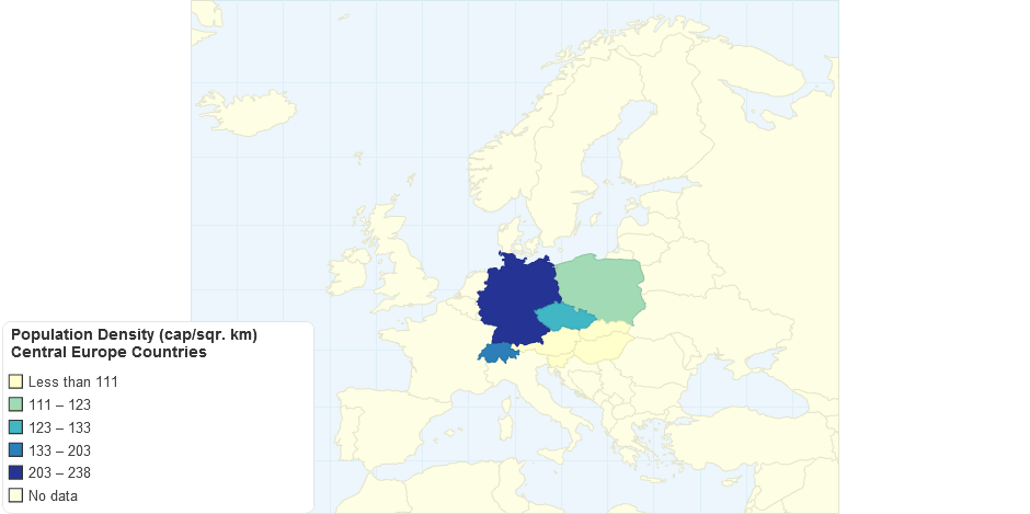 Population density of central Europe countries.