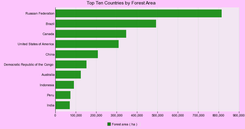 This chart shows Top Ten Countries by Forest Area.