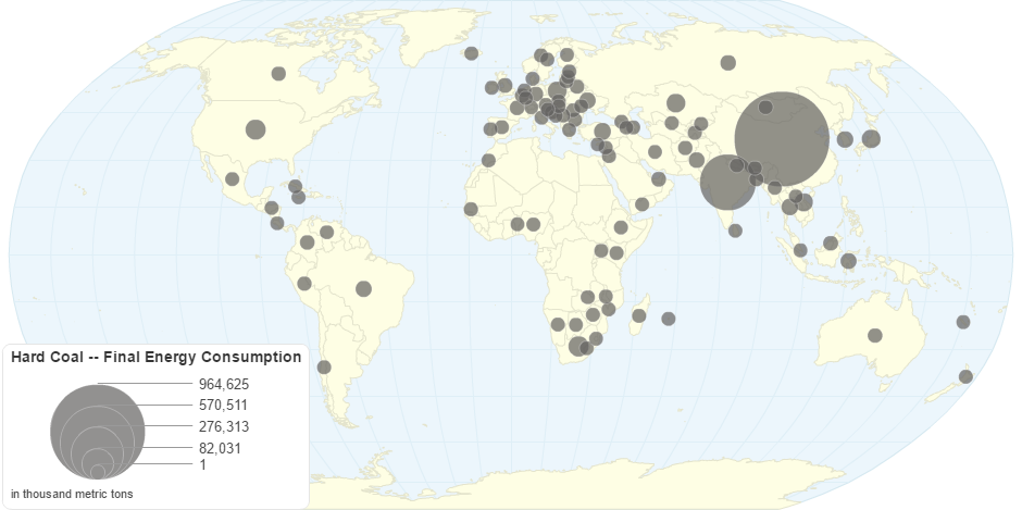 This chart shows Hard Coal -- Final Energy Consumption by Country.