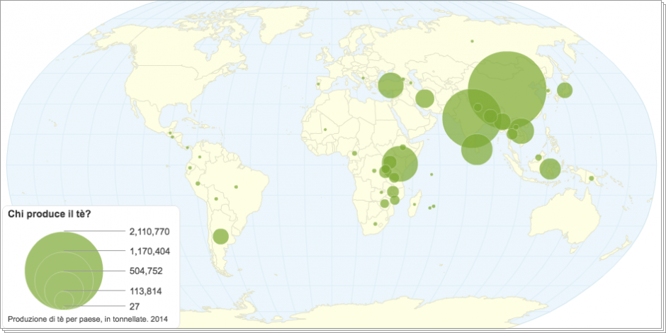 Chi cresce il tè e chi lo beve Produzione e importazione di tè per paese, in tonnellate. 2013, 1014