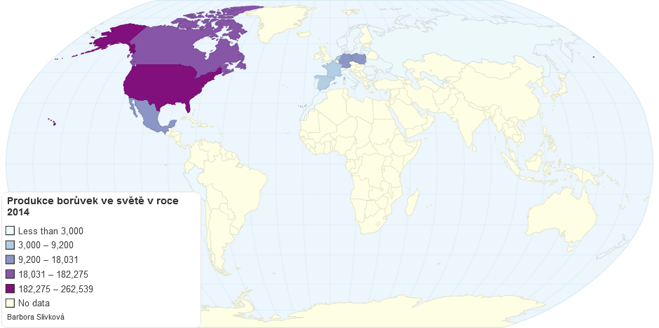 Produkce borůvek ve světě v roce 2014