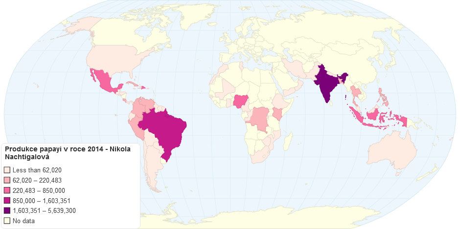 Produkce papayi v roce 2014
