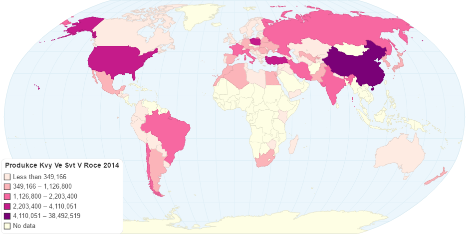 Proukce kávy ve světě v roce 2016 (v tunách)