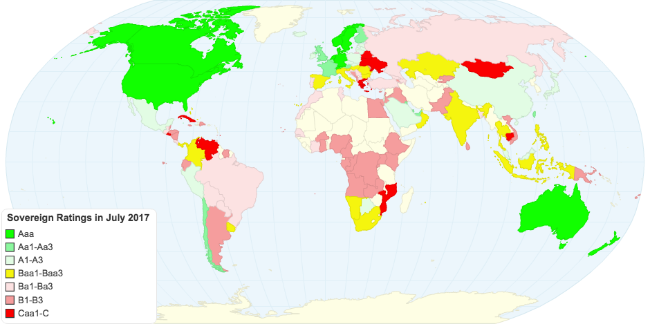 Sovereign ratings (local currency) from Moody's and S&P for countries in July 2017