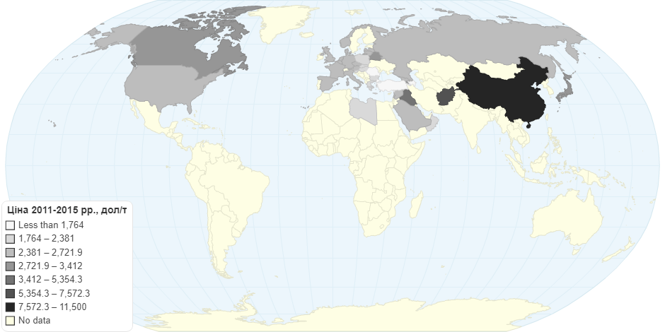 Розподіл країн за ціною імпортованого українського меду в середньому за 2011-2015 рр.