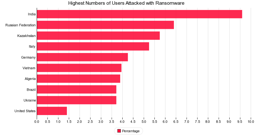 This chart shows Countries with Highest Number of Users Attacked with Ransomware.