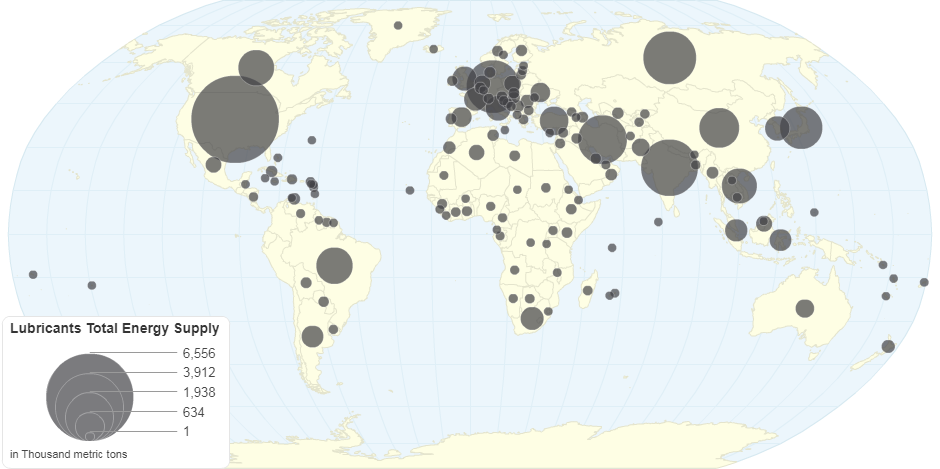 This chart shows Lubricants Total Energy Supply by Country.