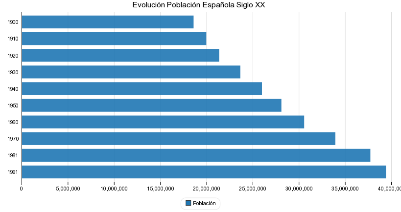 Datos del Instituto Nacional de Estadística sobre poblaciones de hecho desde 1900 hasta 1991 basadas en las cifras oficiales de los Censos respectivos.